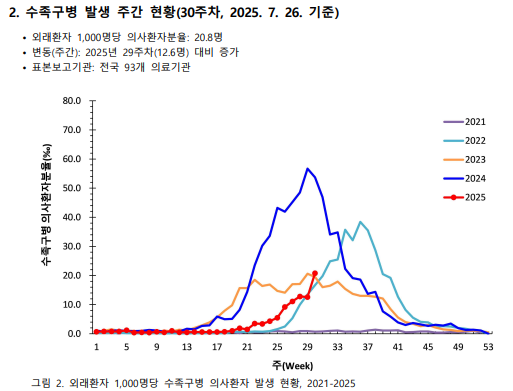매년 6월 경부터 유행했으나, 올해는 평년보다 조금 늦은 7월 말부터 점차 유행이 확산되기 시작했습니다.