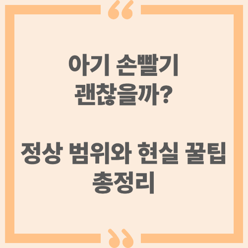 아기 손빨기는 나쁜 습관이 아니라 아기가 스스로를 안정시키려는 방식입니다. 다만, 위생 및 피부 보호에 신경써주고, 대체 자극으로 유도해주면 빈도는 충분히 줄일 수 있습니다.